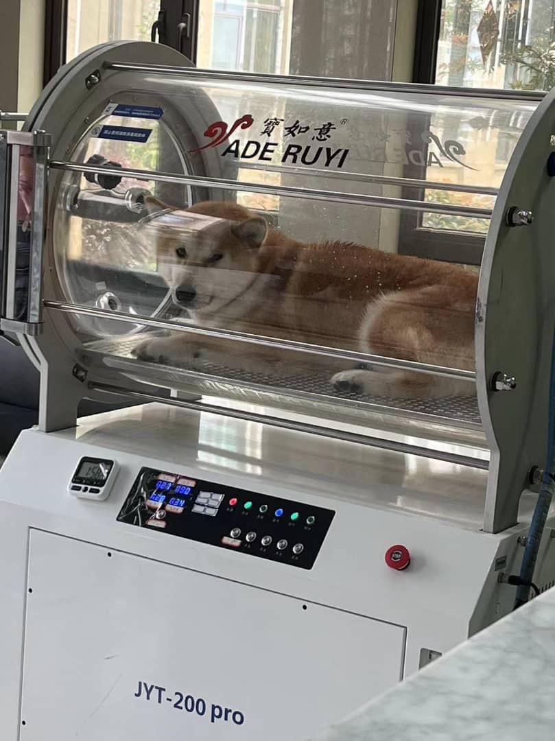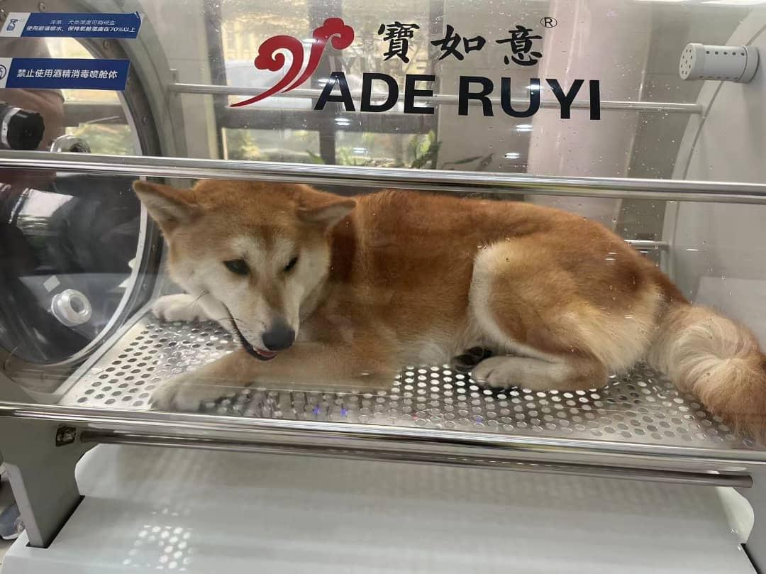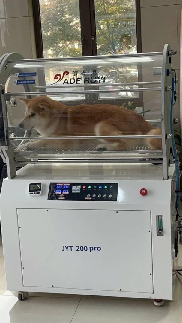Hyperbaric oxygen therapy is a treatment in which the animal is placed in a hyperbaric chamber, a pressure of more than 1.4 ATA is applied and the animal is givenoxygen to inhale.
